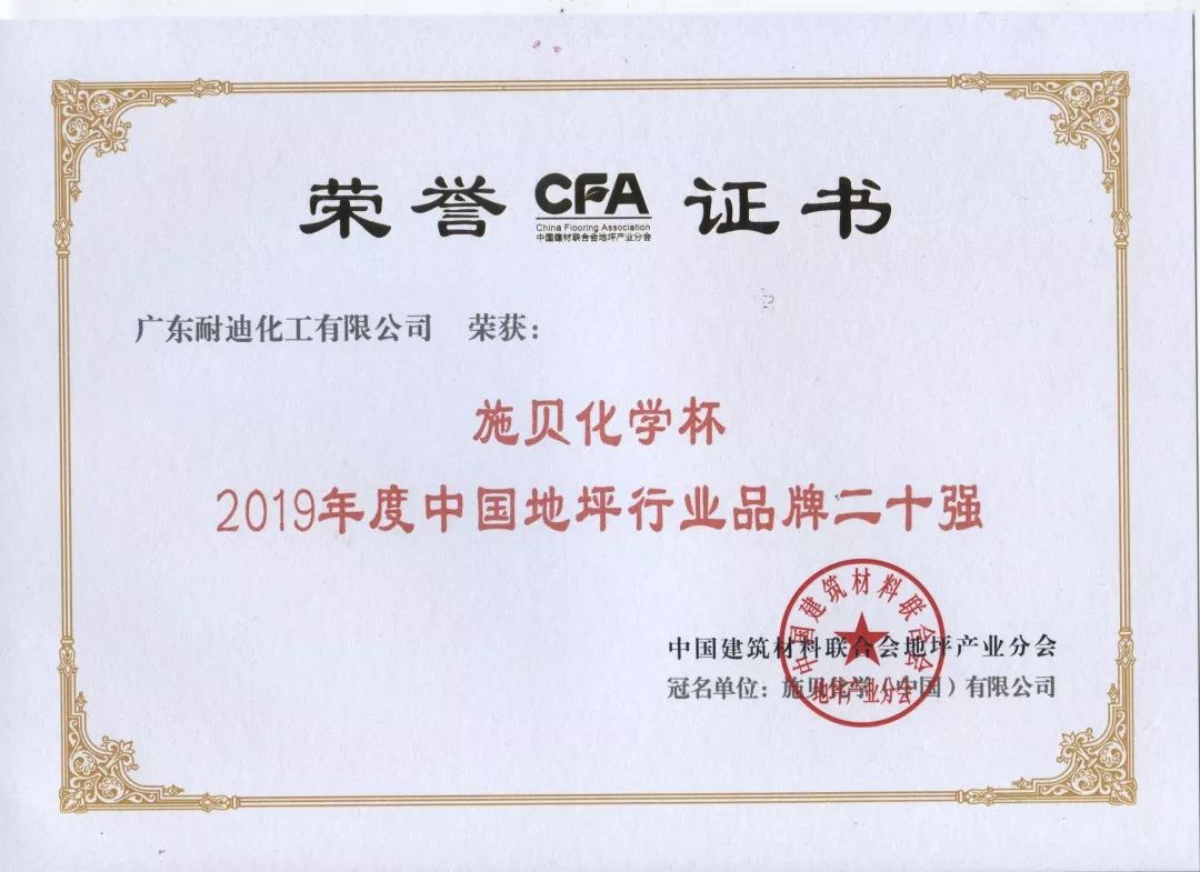 ➤ 连续六年获得“中国地坪行业品牌二十强”,这是对我们莫大的肯定与鼓励。我们不骛虚声,默默耕耘,坚持和努力终不被辜负,期待2020年再创辉煌。