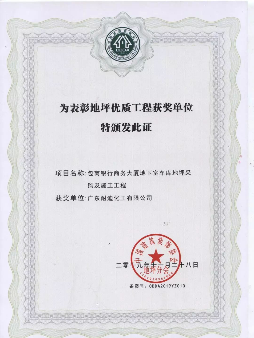 地坪优质工程奖
